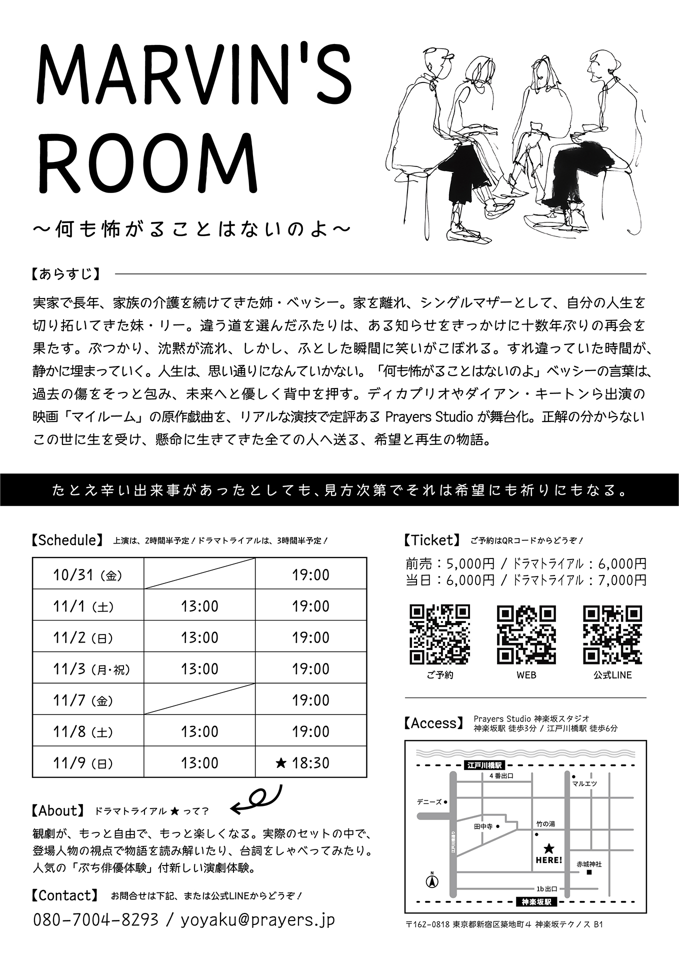 ディカプリオやメリル・ストリープ、ダイアン・キートンら出演の映画「マイルーム」の原作戯曲を、観客を引き込むリアルな演技で定評あるPrayers Studioが舞台化。