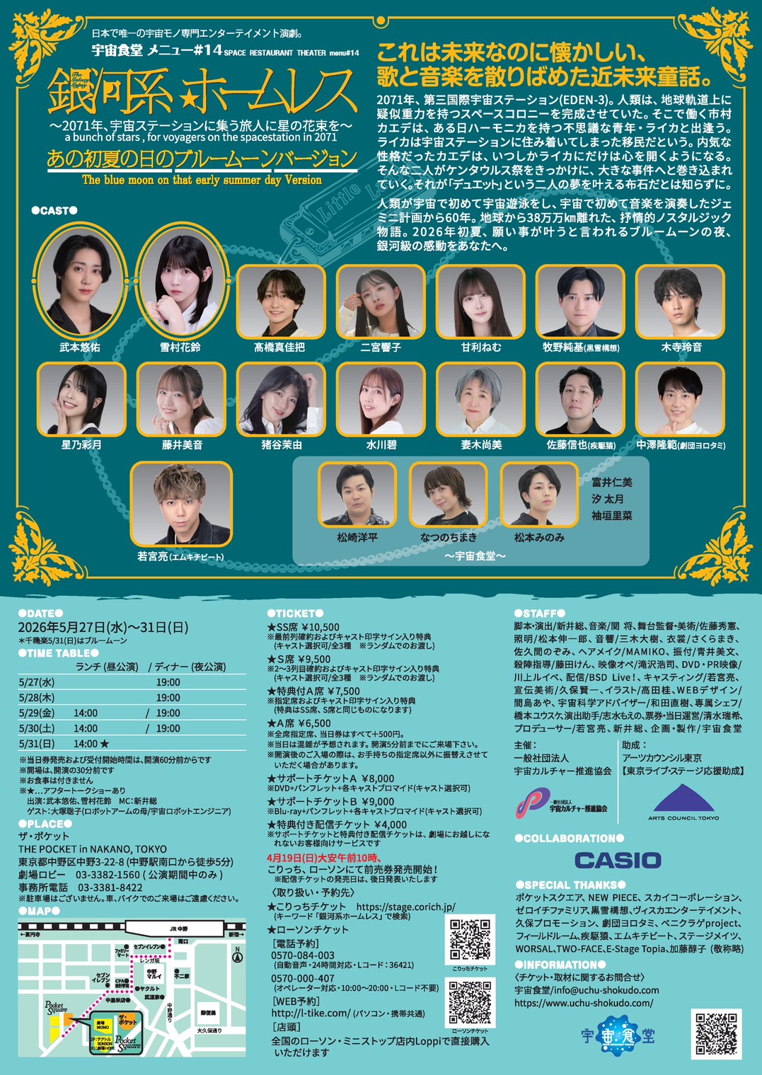 SS席 前売10,500円(最前列確約・特典付)、S席 前売9,500円(2~3列目確約・特典付)、特典付A席 前売7,500円、A席 前売6,500円 全席指定席、当日券はすべて+500 円